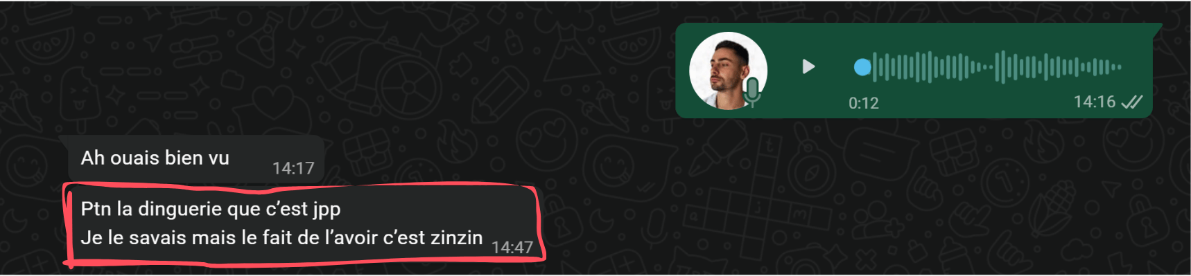 Depuis mon téléphone, via Telegram, j'envoyais quelques messages à mon agent pour suivre l'avancement. Une dizaine d'échanges en tout.